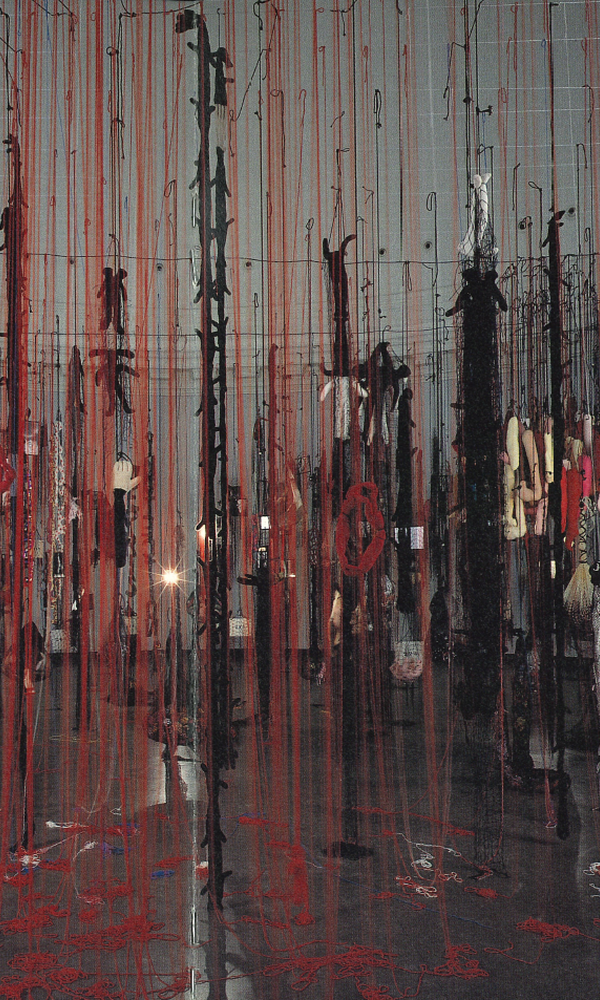 AbhängigkeitUnabhängigkeit: Im Werk Messagers geht es immer wieder um die Vernetzung von Dingen und Gedanken, die nicht assoziierbar scheinen. Sie hat sich als Künstlerin und Sammlerin bezeichnet. Mit dem obsessiven Sammeln kämpft sie gegen die Endzeitlichkeit des Todes an. Je umfangreicher die Sammlung wird, desto unvollständiger bleibt sie.