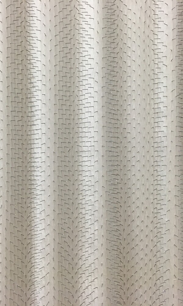 Edith Dekyndts Installation They Shoot Horses besteht aus einem Samtvorhang, der in regelmäßigen Abständen mit Stahlnägeln durchbohrt ist und die eine Raumhälfte des Erdgeschosses der Galerie der Gegenwart durchzieht. Der Vorhang setzt sich durch Raumwände fort und bildet in seiner Kurvenform ein Moment der Bewegung und Dynamisierung innerhalb der strengen quadratischen Rasterung von O. M. Ungers‘ Architektur. Auf einem Video sind Archivaufnahmen des Tanz-Marathons der 1920er Jahre zu sehen. Der schwere Vorhang erinnert an luxuriöse Raumausstattungen oder auch an mondäne Theatervorstellungen. Die Nägel, mit denen der Vorhang gleichmäßig bestückt ist, kontrastieren mit dem weich fallenden Samt und machen aus dem Textil einen »Eisernen Vorhang«.