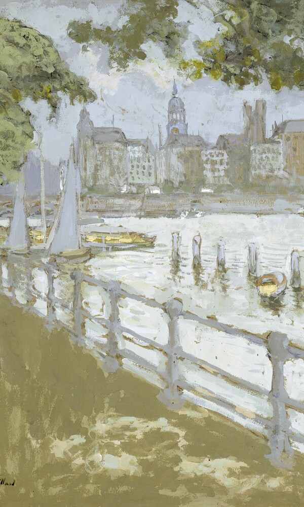 Neben weiteren Bleistiftzeichnungen und Pastellen mit intimen Interieur-Darstellungen stehen besonders die drei 1913 im Auftrag des damaligen Direktors der Hamburger Kunsthalle, Alfred Lichtwark, entstandenen, großformatigen Ansichten der Binnenalster im Blickfeld. Vuillard hat diese Bilder, die sich im Besitz der Kunsthalle befinden, während eines gemeinsamen Hamburg-Aufenthaltes mit Pierre Bonnard vor Ort gezeichnet. Diese Bilder waren zusammen mit Gemälden, die 1912 von der Neuen Pinakothek in München erworben wurden, die ersten Werke Édouard Vuillards in öffentlichem Museumsbesitz. Katalog, 128 Seiten, zahlreiche Farb- und Schwarzweißabbildungen, DM 39 (€ 20).
