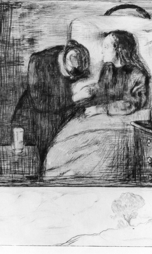 In Erinnerung an den frühen Tod seiner Schwester hat sich der Norweger Edvard Munch sein Leben lang mit dem Motiv des kranken Kindes befasst. Die Hamburger Kunsthalle zeigt das Motiv jetzt in einer Reihe graphischer Arbeiten, die Blatt für Blatt mit unterschiedlichen Farben bedruckt sind und daher einen faszinierenden Ausdrucksreichtum entfalten. Im Mittelpunkt steht Munchs Pastell »Das kranke Kind« von 1896, das Erika und Klaus Hegewisch jüngst der Kunsthalle zum Geschenk gemacht haben. Die Ausstellung umfasst 25 Werke. Es erscheint ein Bändchen in der Kleinen Reihe der Hamburger Kunsthalle. Die Ausstellung findet im Hegewisch-Kabinett statt.