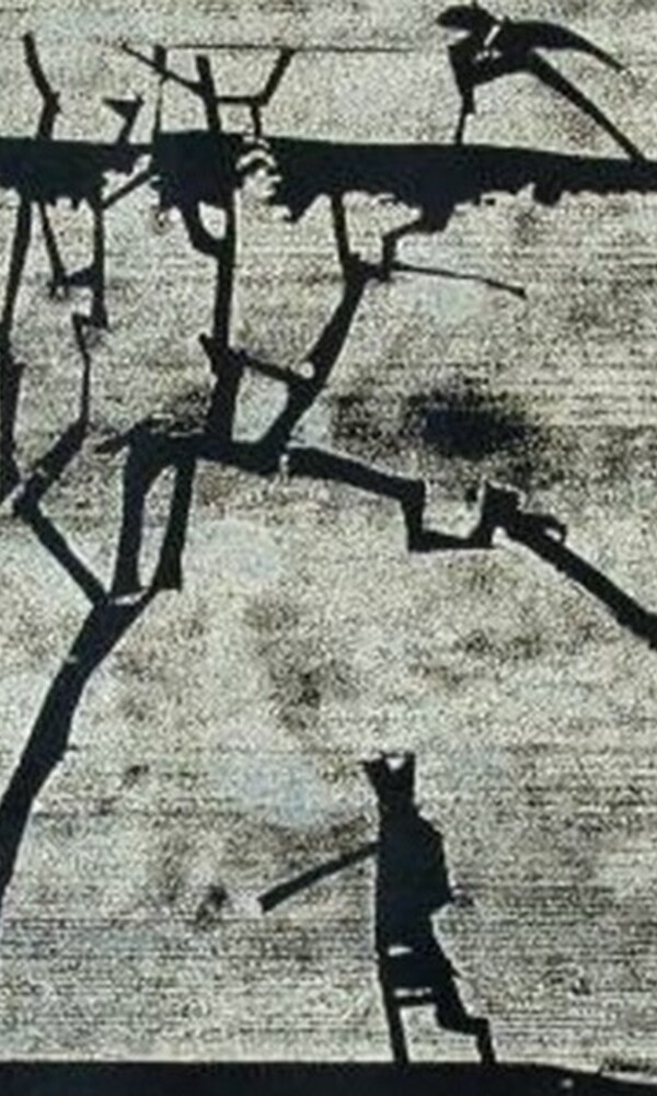 Deutlich wird Janssens Arbeitsweise am Beispiel des in der Vitrine ausgestellten Holzstockes des »Großen Krebs« von 1957, bei dem sowohl die Vorder- wie die Rückseite als Druckplatte dienten. 1957 nur in wenigen Exemplaren erschienen, stellte Hartmut Frielinghaus 1987 von diesem Holzstock Neudrucke her, die Janssen durch seine Signatur autorisierte. Anders verhält es sich bei der Darstellung »Der Morgen«, die Janssen 1957 schnitt, jedoch nie ausdruckte und die nun in der Ausstellung als »Erstdruck« von 1987 hängt. Die in den Jahren 1957-61 entstandenen Holzschnitte waren für eine Auflage von 25 Exemplaren angelegt, wobei Janssen auf Bestellung einzelne Blätter in Farbvarianten druckte. Jeder Holzschnitt ist deshalb ein Unikat.