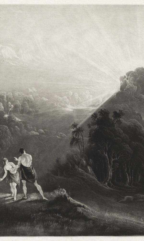 Zwischen 1824 und 1827 schuf der englische Maler und Graphiker John Martin (1789-1854) eine Folge von Schabkunstblättern zu John Miltons berühmten Epos Paradise Lost (Das verlorene Paradies). In 24 Illustrationen schildert Martin den Sündenfall und die Vertreibung aus dem Paradies als gewaltigen Kampf zwischen den himmlischen und den höllischen Mächten. Bereits während der Entstehung der ersten Illustrationen erhielt Martin von seinem Verleger Septimus Prowett den Auftrag für eine weitere, kleinere Illustrationsfolge zum gleichen Thema. So erschienen 1827 zunächst die Bände im Folioformat, kurz darauf die kleinere Version mit ebenfalls 24 Blättern. Martins kongeniale Umsetzung der Miltonschen Dichtung gehört zu den Höhepunkten der Schabkunst- oder Mezzotintotechnik.