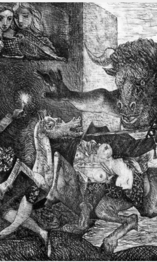 Motive des Stiers und des Stierkampfes – ein traditionell spanisches Thema – ziehen sich durch Picassos gesamtes Werk. Einen besonderen Platz nehmen die Szenen in seinem graphischen Werk ein. Die 1957 entstandene Folge La Tauromaquia lässt wie ein Bilderbogen das Geschehen in der tosenden Arena an uns vorbeiziehen. Die Folge von 26 Aquatinta-Radierungen entstand als Illustration zum ersten Lehrbuch der Stierkampfkunst, La Tauromaquia, o arte de torear, ein Buch aus dem Jahre 1796, dessen Autor einer der bekanntesten Stierkämpfer seiner Zeit war, der Torero José Delgado y Galvez, genannt Pepe Illo.