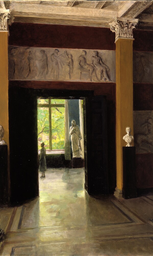 In der neuen Familienausstellung der Hamburger Kunsthalle geht es prächtig zu: Rund 15 Kunstwerke, teils auf Goldgrund, strahlen ab dem 15. April im Hamburger Kinderzimmer zum Thema »Phantastische Paläste«. Große Kuppeln, breite Treppen und verzierte Säulen sind auf den Gemälden wie »Dogenpalast« (1922-32) von Erich Brill, »Säulensaal« (1928) von Julius von Ehren oder auf der Photographie »Hamburger Kunsthalle« (1997) von Candida Höfer zu sehen. Auch Skulpturen wie eine aus Speckstein nachgebildete Galerie der Gegenwart, Videos vom phantastischen Bauen, Graphiken in geheimnisvollen Schubladen und versteckte Spielstationen erwarten die kleinen und großen Besucher. Zusätzlich können die Kinder mit Hilfe einer »Wanderkarte« (kostenlos an den Kassen erhältlich) auch andere Räume der Hamburger Kunsthalle zum Thema »Phantastische Paläste« erkunden. Auf diesem ‚Wanderweg’ sind gemütliche Hütten, dunkle Höhlen und die höchsten Türme der Welt zu entdecken. Hierbei zeigt sich, dass das Museum selbst ein großer Prachtbau ist, dessen Formen und Verzierungen aus verschiedenen Zeiten sich mit Rätseln und Mitmachaufgaben der »Wanderkarte« erklären lassen. Zurück im Kinderzimmer geht es selbst ans Werk: Mit den bunten Spielelementen von Olafur Eliasson, die zur Einrichtung des Zimmers gehören, kann ein eigener phantastischer Palast gebaut werden.