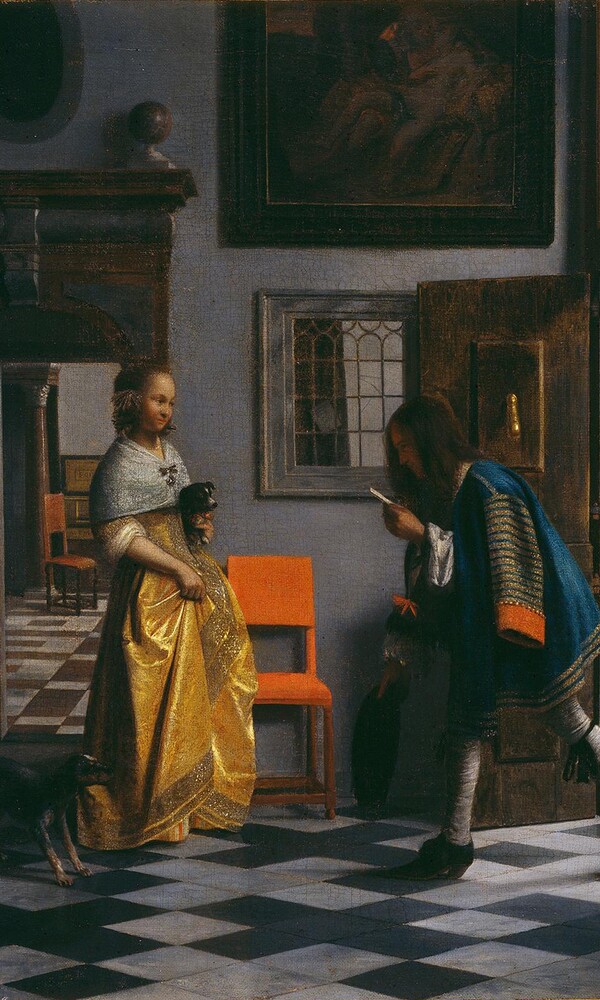 Der Rotterdamer Maler Pieter de Hooch (1629-1684) gehört zu den prominentesten Künstlern aus der zweiten Hälfte des 17. Jahrhunderts, des Goldenen Zeitalters der Niederländischen Malerei. Er wird wie auch Gerrit Dou, Gerard ter Borch, Caspar Netscher, Gabriel Metsu oder Nicolaes Maes oft als Feinmaler bezeichnet. Deren sorgfältig konzipierten Interieurs und feinsinnig gestalteten Lebensmomente gutsituierter holländischer Bürger werden in ihrer unnachahmlichen Wirkung von einem Reichtum an feinst ausgearbeiteten Details und einer komplexen Lichtregie bestimmt. Dabei kann der Erhaltungszustand eines solchen Gemäldes großen Einfluss auf die Interpretation nehmen und muss somit besonders berücksichtigt werden. Nach der Restaurierung des »Liebesboten« von Pieter de Hooch steht dieses Gemälde nun im Zentrum der Präsentation der kleinen Schau sorgfältig ausgewählter Werke auch seiner Zeitgenossen. Erstmals können der besondere Farbklang dieses Bildes als auch seine inhaltlichen Motive wieder erfahren und die facettenreiche Beziehung zwischen den Dargestellten nachvollzogen werden. Die Sprache der Liebe, der Gestik und der Körperlichkeit, des Lichts und der Stofflichkeit werden hier thematisiert.