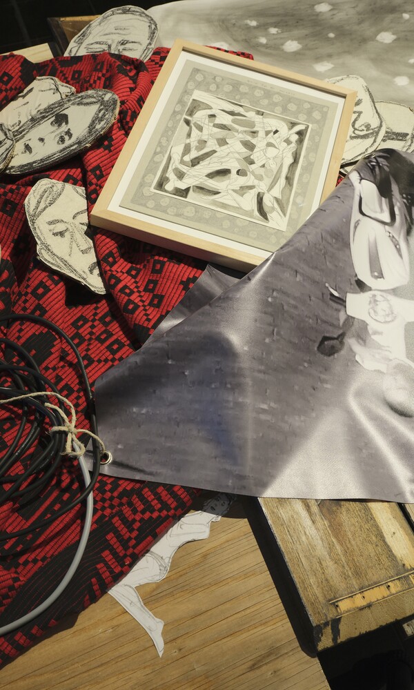 Aufgewachsen in Italien, Rumänien und Deutschland spielen biographische, kulturelle und gesellschaftliche Erfahrungen und Beobachtungen von ihren Reisen eine wichtige Rolle in der künstlerischen Arbeit von Serena Ferrario. In ihren installativen Arbeiten integriert sie gefundenes Material mit Zeitungsausschnitten, Objekten und schwarz-weißen Filmbildern. Die Ausstellung dokumentiert nicht nur die verschiedenen Facetten von Ferrarios Werk, sondern wirft mit der Frage Where the Drawings live explizit einen Blick behind the scenes: Von der Hinterfragung der eigenen Arbeit im Atelier bis hin zur Präsentation im öffentlichen Raum und den Reaktionen des Publikums.