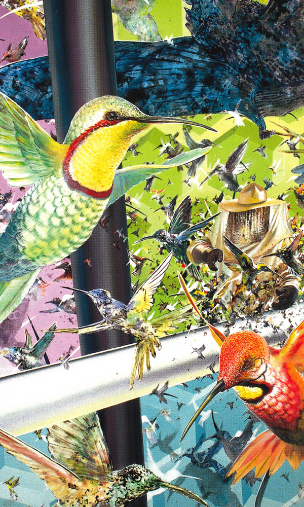 Keine Scheu vor starken Kontrasten zeigt Christian Hahn in seinen neuen Bildern: Eisbären treffen dort auf Kolibris und Science-Fiction Monster aus den entlegensten Galaxien. Seine großformatigen Kompositionen - stark in ihren Farben, fetzig in ihren Kombinationen - bewegen sich zwischen digitaler Raumkonzeption und virtuoser Malerei.