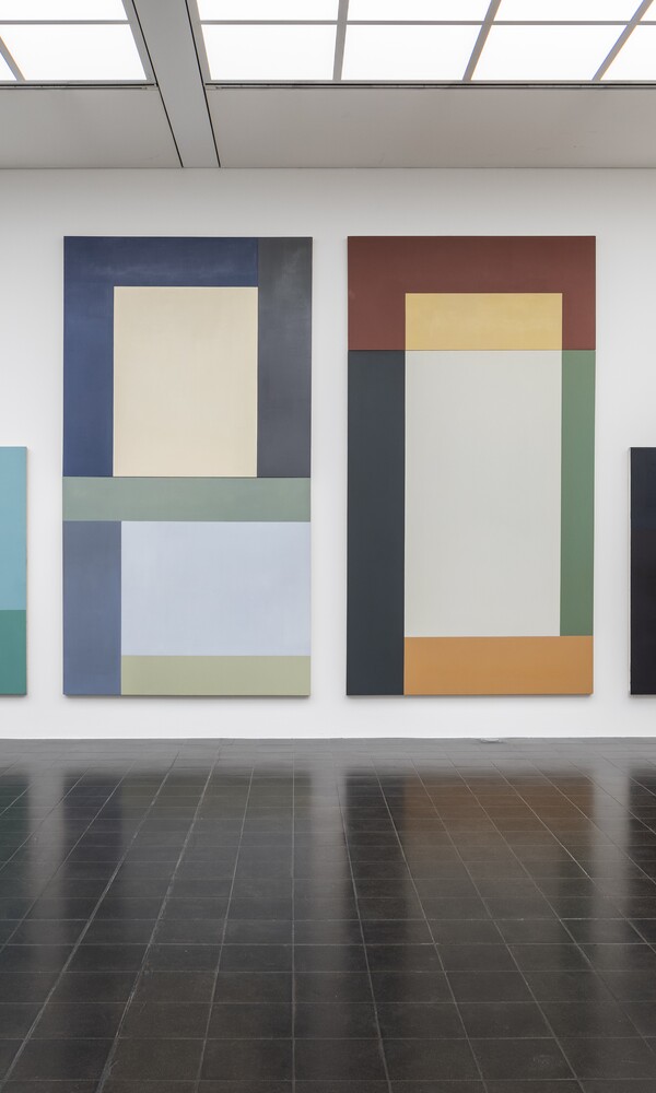 VIERMALVIER / FOURTIMESFOUR stellt hierbei eine um ausgewählte Gäste erweiterte Sammlungspräsentation dar, welche aus dem Bestand Bekanntes mit Unbekanntem, bereits Gezeigtes mit noch nie Präsentiertem, Neues mit Altem vereint. Dabei verbindet die Ausstellung Werke des 17. Jahrhunderts mit Positionen des 19. und 20. Jahrhunderts sowie der zeitgenössischen Kunst. Alfons Muchas Lithographie-Folgen von 1897 treffen auf speziell für die Ausstellung geschaffene auratische Gemälde von Vivian Greven und eine raumgreifende Skulptur des aus Hamburg stammenden Künstlers Frank Gerritz von 2021 tritt in einen Dialog sowohl mit einem in den 1970er Jahren geschaffenen kinetischen Objekt von Tomitaro Nachi als auch einer kleinformatigen Studie Josef Albers von 1965. Den Auftakt der Ausstellung bildet David Novros mit seinem monumentalen, vierteiligen Gemälde »Four Seasons« von 1974, in welchem er den wohl bekanntesten Konzertzyklus des Komponisten Antonio Vivaldi aufgreift und die Abfolge der vier Sätze auf vier große quer- und hochrechteckige Bildflächen überträgt. In Gegenüberstellung mit »Vier Jahreszeiten. Opus 7. Der Mond ist aufgegangen« von Hanne Darboven, einem der aus ihren Zahlensystem übertragenen Notensysteme, und Hanns Kunitzbergers vier Gemälden »1. Hälfte 2019 I, II, III, IV« , welche in ihrer statuarischen Hochformatigkeit und dem Bewegung oder gar Ekstase assoziierenden flirren ihrer Farben die US-amerikanische Farbfeldmalerei und Minimal Art wie auch die »Die vier Apostel« eines Albrecht Dürers anklingen lassen, ergibt sich formal, inhaltlich und medial eine spannungsgeladene Zusammenstellung, welche herausfordert die einzelnen künstlerischen Positionen wie auch den Raum, zu welchem sie in Beziehung zu setzen und auf welchen sie ausgerichtet sind, neu zu befragen.