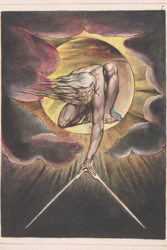 Illustriert werden die entscheidenden Aspekte der Kunst Blakes von seiner klassischen Ausbildung an der Royal Academy of Arts in London über seine Beschäftigung mit der Kunst der Antike und der Renaissance bis hin zu seiner Begeisterung für die mystischen Bildwelten der frühen Neuzeit, z. B. des deutschen Philosophen Jakob Böhme (1575-1674). Die Ausstellung vergleicht Blakes Werk zudem mit anderen Künstlern, die sich im Angesicht vernichtender politischer Krisen der bildenden Kunst zuwandten, um die Welt neu zu errichten: Der Romantiker Philipp Otto Runge (1777–1810) strebte ebenfalls an, die geistige Erneuerung des Menschen in künstlerisch neuartiger Form sichtbar zu machen. Blakes Darstellungen der Reise der Seele vom Gefallensein bis zur Erlösung werden zudem mit Werken von Zeitgenossen wie seinem jüngeren Landsmann Samuel Palmer (1805-1881) und Caspar David Friedrich (1774-1840) in Bezug gesetzt, um so die künstlerischen Spannungen zwischen individueller, nationaler und universeller Befreiung um 1800 aufzuzeigen.