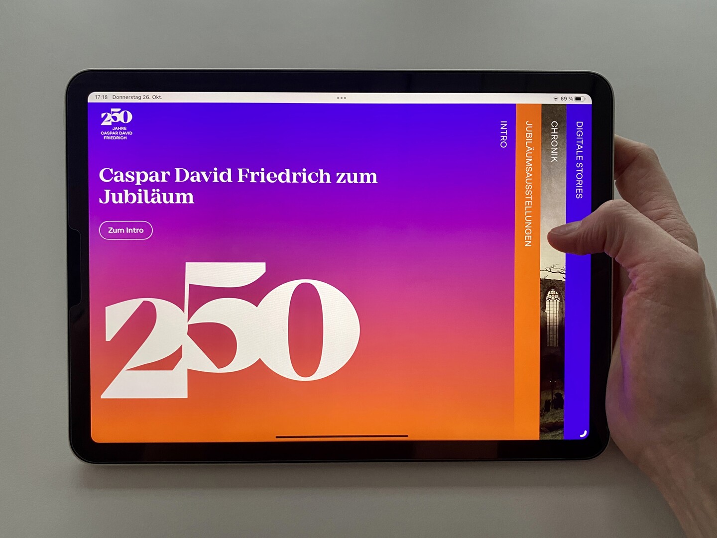In the anniversary year of 2024, the chronicle, which focuses on Friedrich's life from 1774 to 1840, will be expanded to include the reception of his art in the decades and centuries after his death. In the course of the preparations for the three exhibitions, further content from the cooperation partners in Hamburg, Berlin and Dresden will be added, for example texts or audio files on Friedrich's main works, further digital stories, and in the future additional multimedia content, from gigapixel recordings to art technology Visualization.